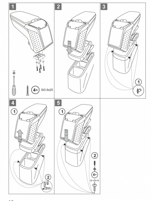 Die Montage der Mittelarlmlehne ist ganz einfach. Sie wird mit 2 Schrauben befestigt, die als Bestandteil der Verpackung sind.